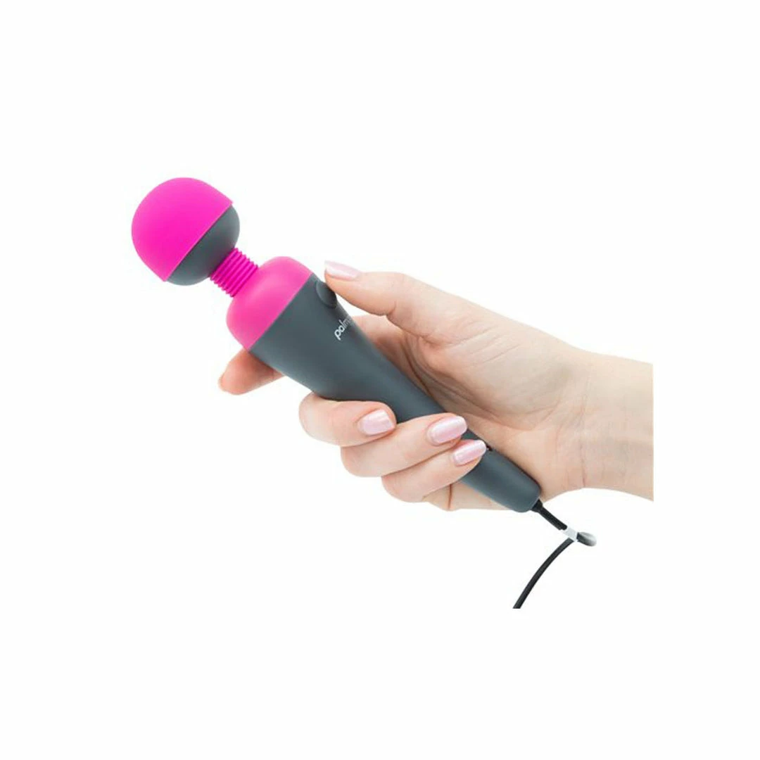 To turn on your Palmpower massager, simply press the button once. Press & hold the same button to increase the intensity of your favorite sex toy. The PalmPower Plug & Play has a grey handle with a vibrant fuchsia silicone cap and neck.