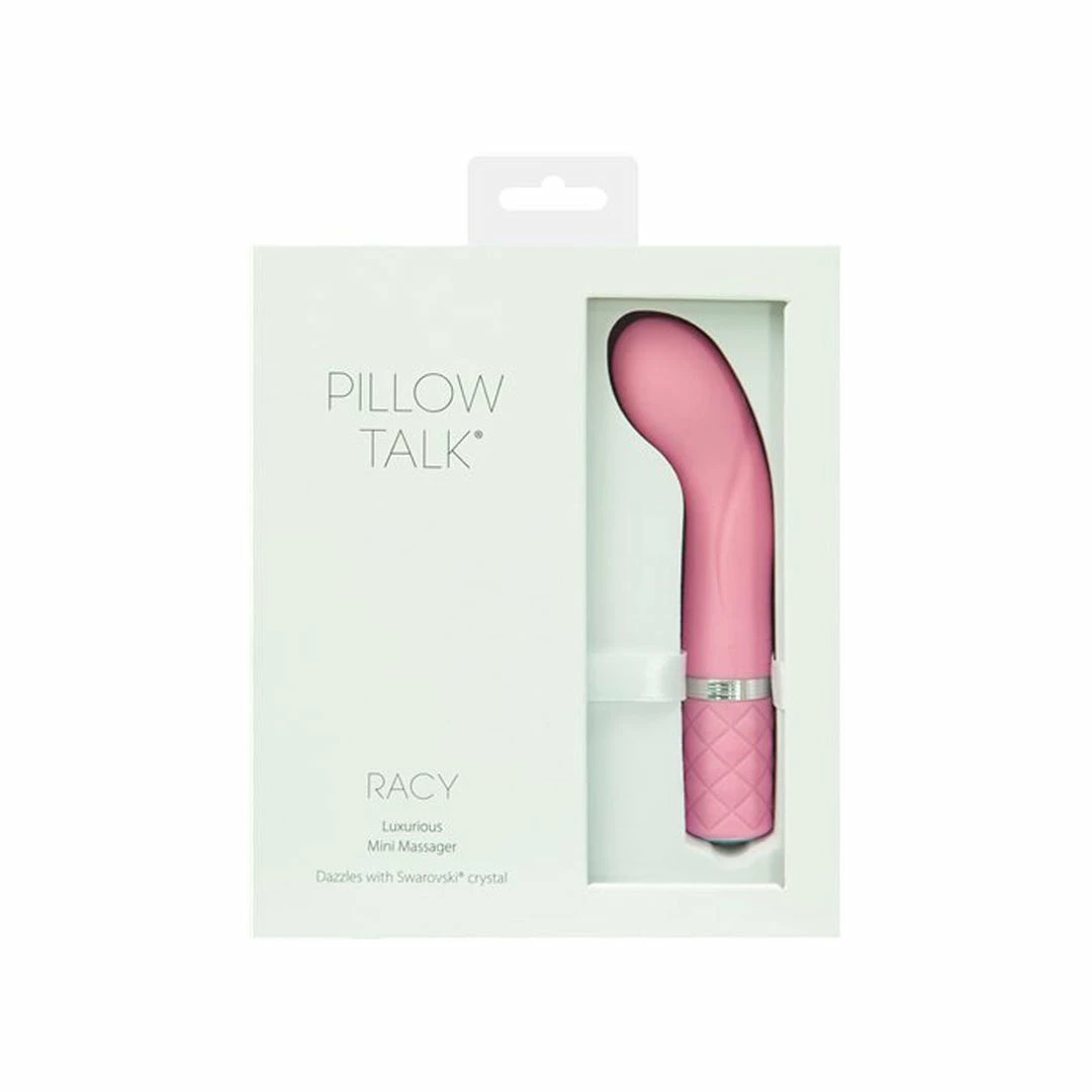 Racy by Pillow Talk offers unbelievable vibrations for external pleasure or G-spot stimulation. This mini vibrator is rechargeable and is conveniently compact for travel. With a quilted texture handle, silky silicone finish and a dazzling Swarovski crystal button, this flexible vibrator combines luxury and power in one.