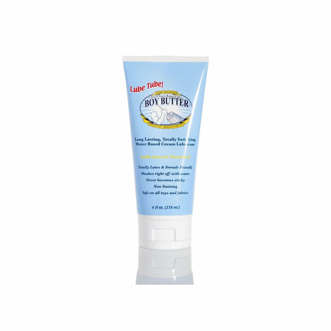 Boy Butter H20 (aka You’ll Never Know it isn’t Boy Butter) is our water based cream lubricant with added Vitamin E and Shea butter, whipped into an organic creamy faux grease that safe to use equally for both men or women. The formula is creamy and goes on clear, the end result is a water based personal lubricant that feels like an oil based lubricant yet is totally water based, latex safe and vaginally safe. Boy Butter H20 is long lasting, gentle, non-staining, hypoallergenic and is safe on all toys. 6 fluid ounces.
