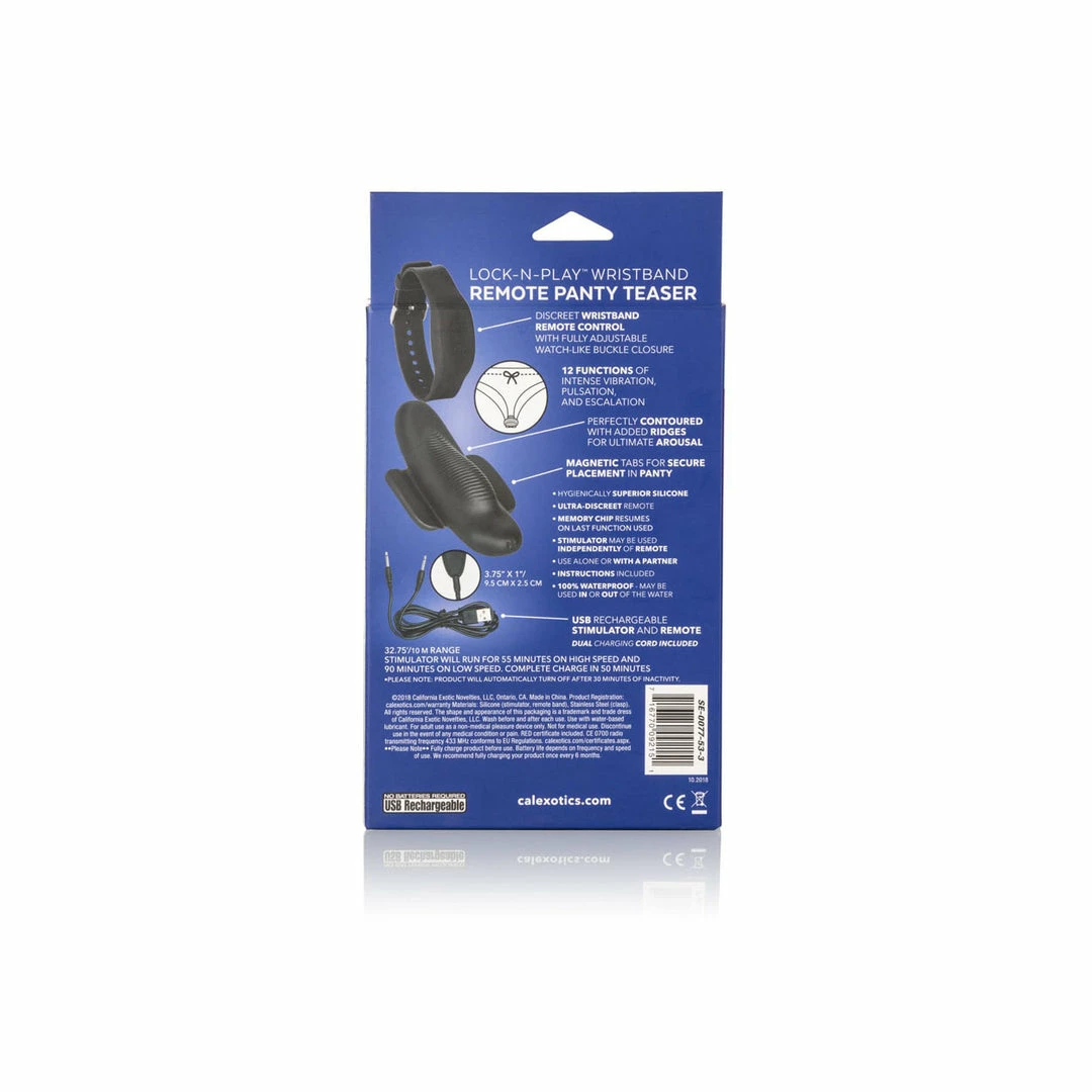 The Lock-N-Play Wristband Remote Panty Teaser is a powerfully petite massager paired with a playfully discreet wristband controller for adventurous pleasure seekers. The stylish, yet discreet wristband controller makes it easy for you or your lover to control vibration intensity with the touch of a button.
