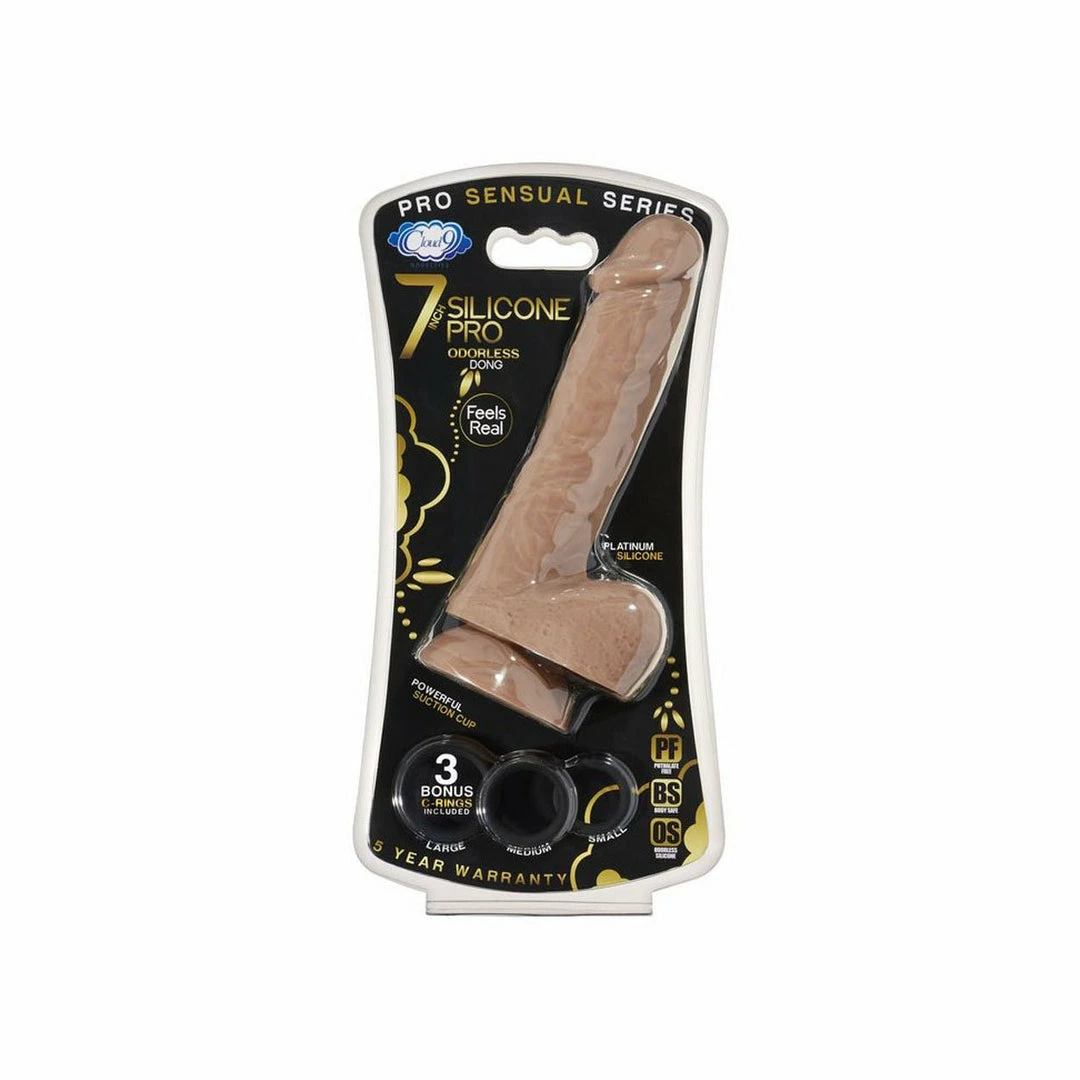 Sized and shaped perfectly, this realistic dong can satisfy you like no other! Perfect for both anal and vaginal play. Made of platinum grade odorless Silicone. Harness compatible base insures stability and the suction cup seals to most flat surfaces for hands free solo pleasure. 3 bonus cock rings: small, medium and large.