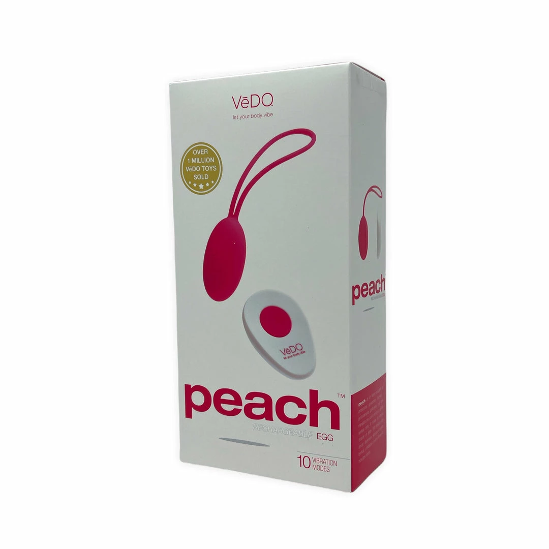 Peach rechargeable egg delivers discreet and deeply gratifying sensations. This remote controlled egg allows you to change any of the 10 vibration modes with a touch of a button.