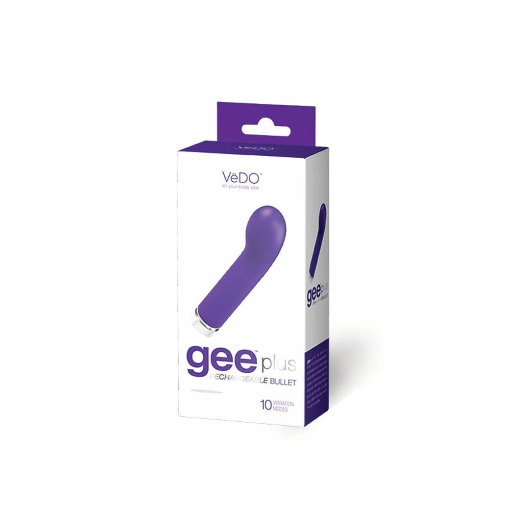 Vedo GEE plus has gone into overdrive with its 10 super charged vibration modes. With a perfectly curved shaft and round head, this powerhouse bullet is designed to tickle and delight your G-spot. The silky smooth silicone will always leave you wanting more. For those who like to get wet and wild while they play, GEE plus is completely submersible.