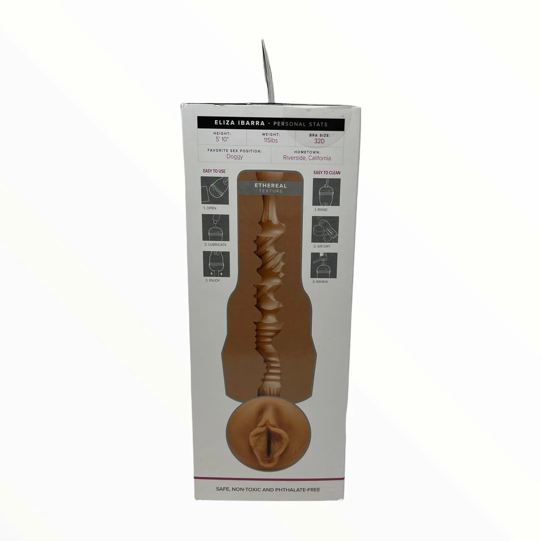 Eliza Ibarra‘s sweet self through the magic of Fleshlight. A pearlescent hard case stroker with captivating supple internal texture. The soft Super Skin sleeve is adorned with a life cast of