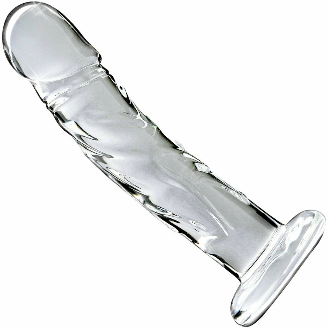 This luxurious glass massager features a tapered tip to ease insertion and a pronounced head that hits all the right spots. Cleverly curved for explosive G-Spot or P-Spot stimulation, the realistic veiny shaft offers additional stimulation, while the sturdy flat base ensures safe and easy handling. Featuring a wide, harness-compatible base, turn this into a unique strap-on.