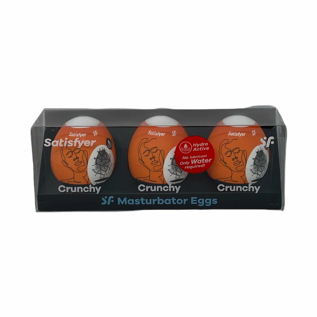The Satisfyer Masturbator Eggs are flexible, one-time use and made entirely of Hydro-Active TPE, meaning there is no need for lube. Simply moisten with a splash of water for a new realistic sensation!