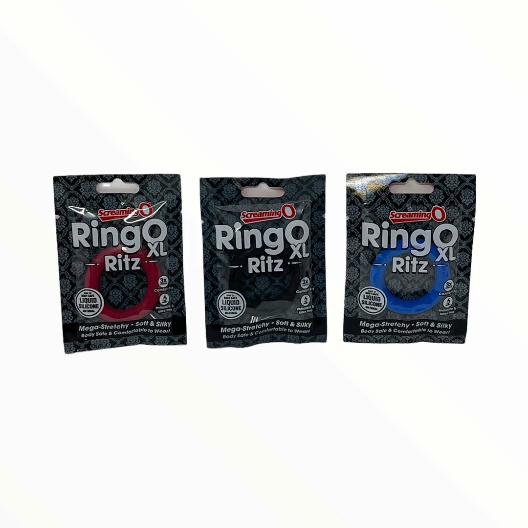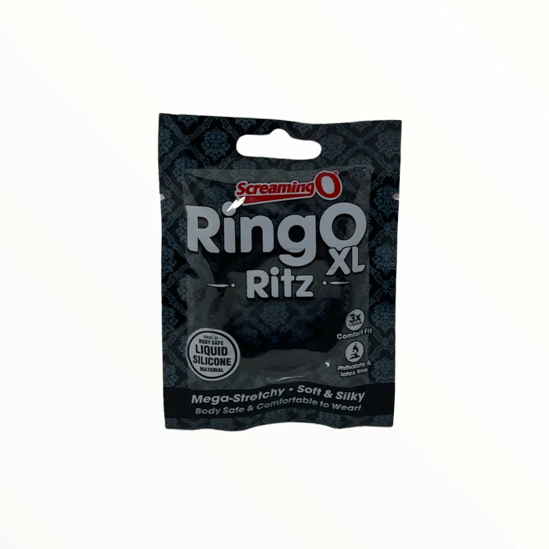 The RingO XL is the innovative liquid silicone cock ring from Screaming O, now in a new larger size. The premium RingO Ritz XL takes all your favorite qualities from the bestselling original RingO XL and turns up the luxury by crafting it out of sumptuous liquid silicone for a more supple texture and springy hold.