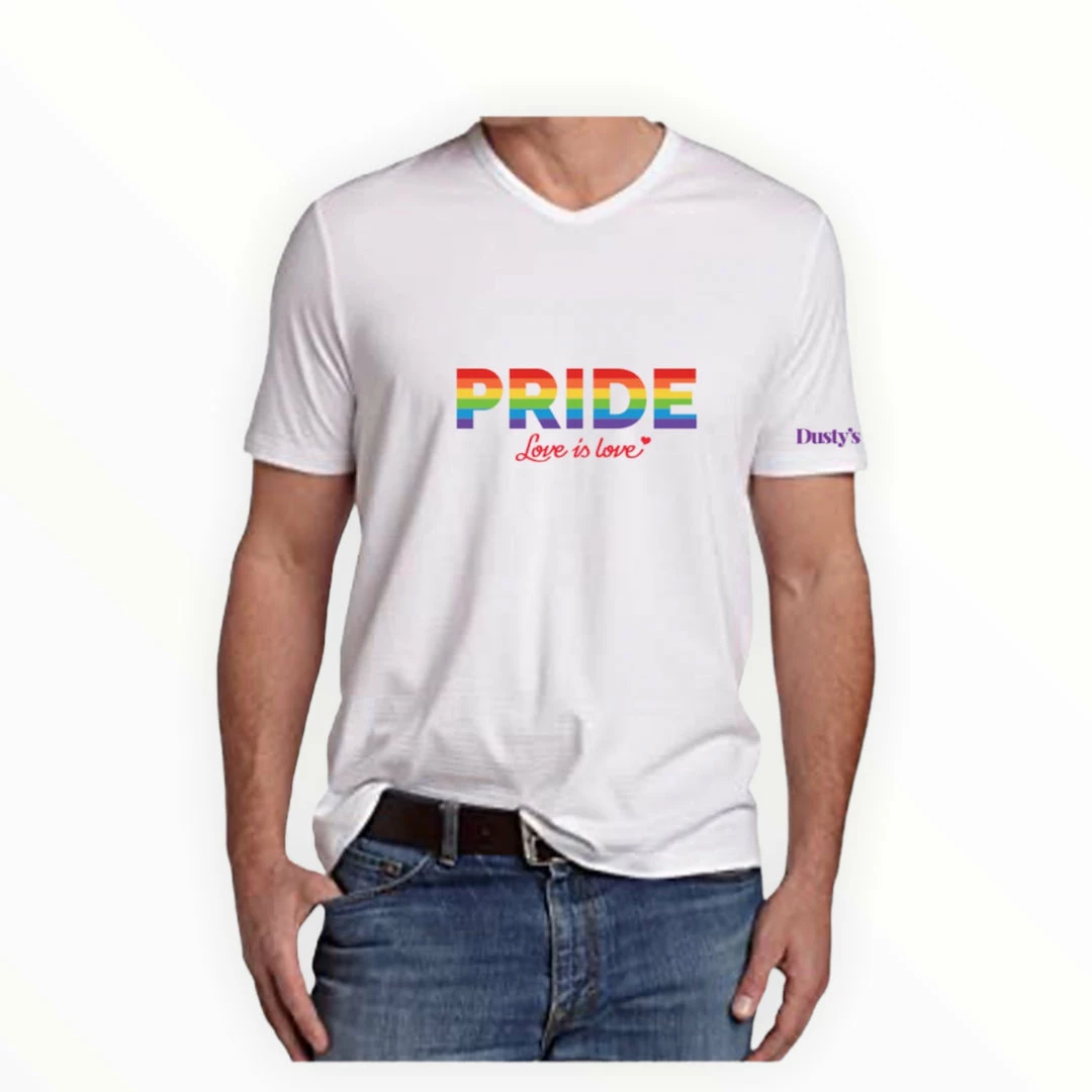 Show your pride with this ultra soft rainbow PRIDE shirt.