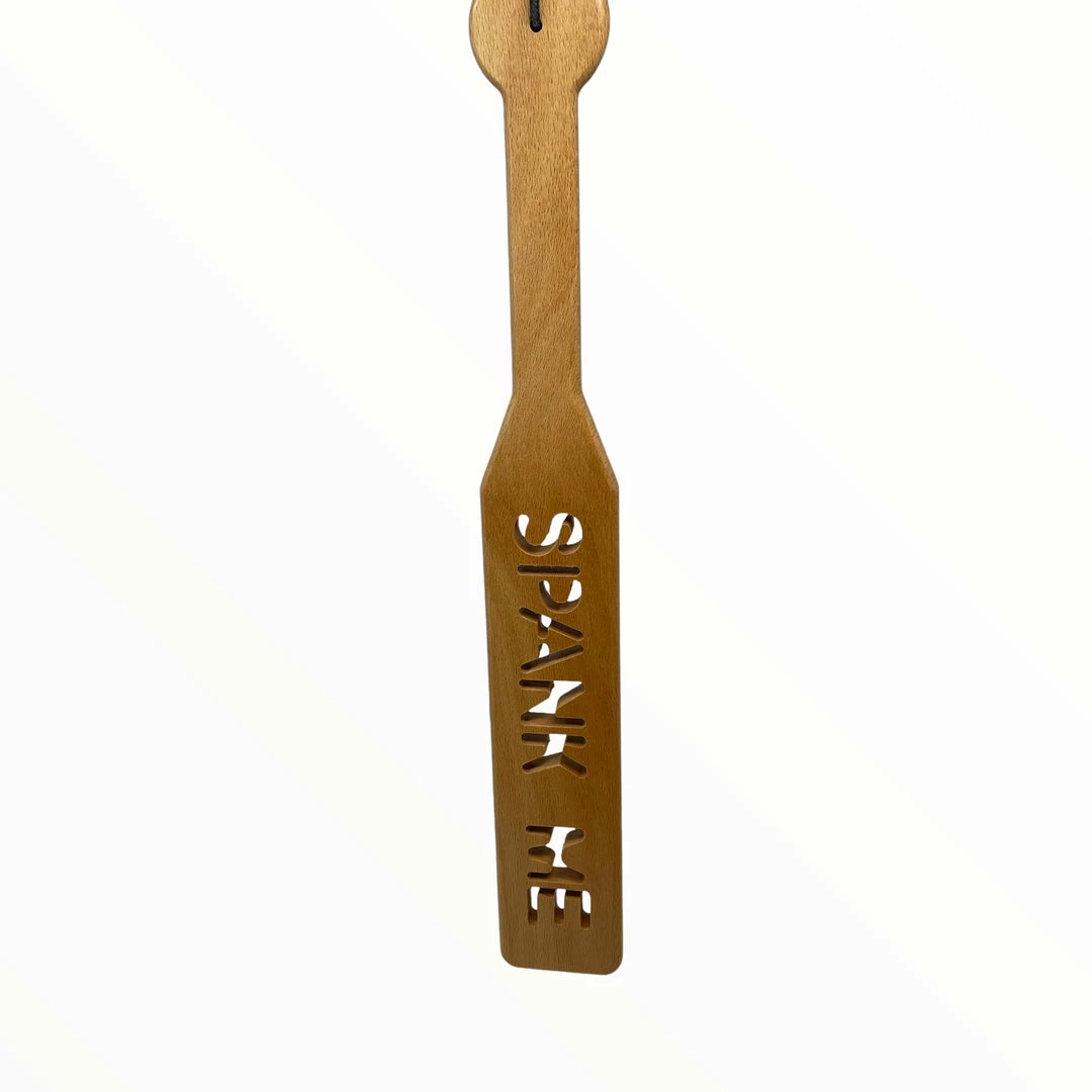 40cm Zelkova Wood Paddle with Impression Spank Me from Spartacus Leathers.