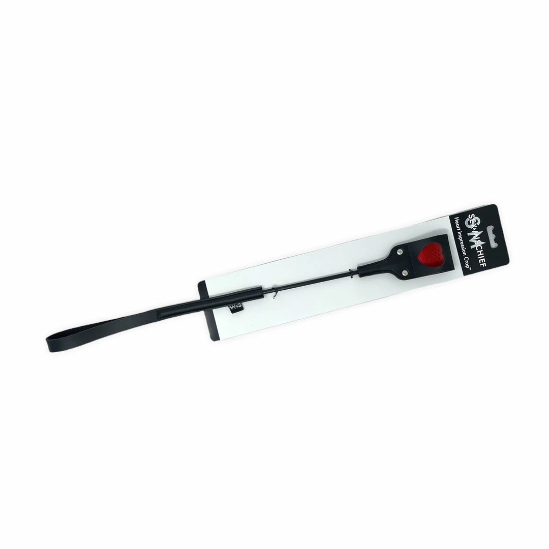 The Impressions Heart Crop is a riding crop-style slapper perfect for your bondage play. This pleather, heart detailed crop allows your heart to leave its mark.