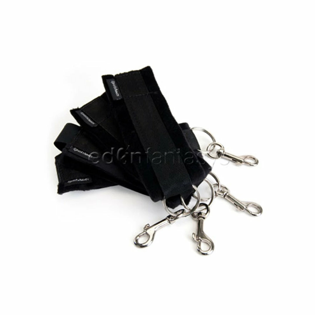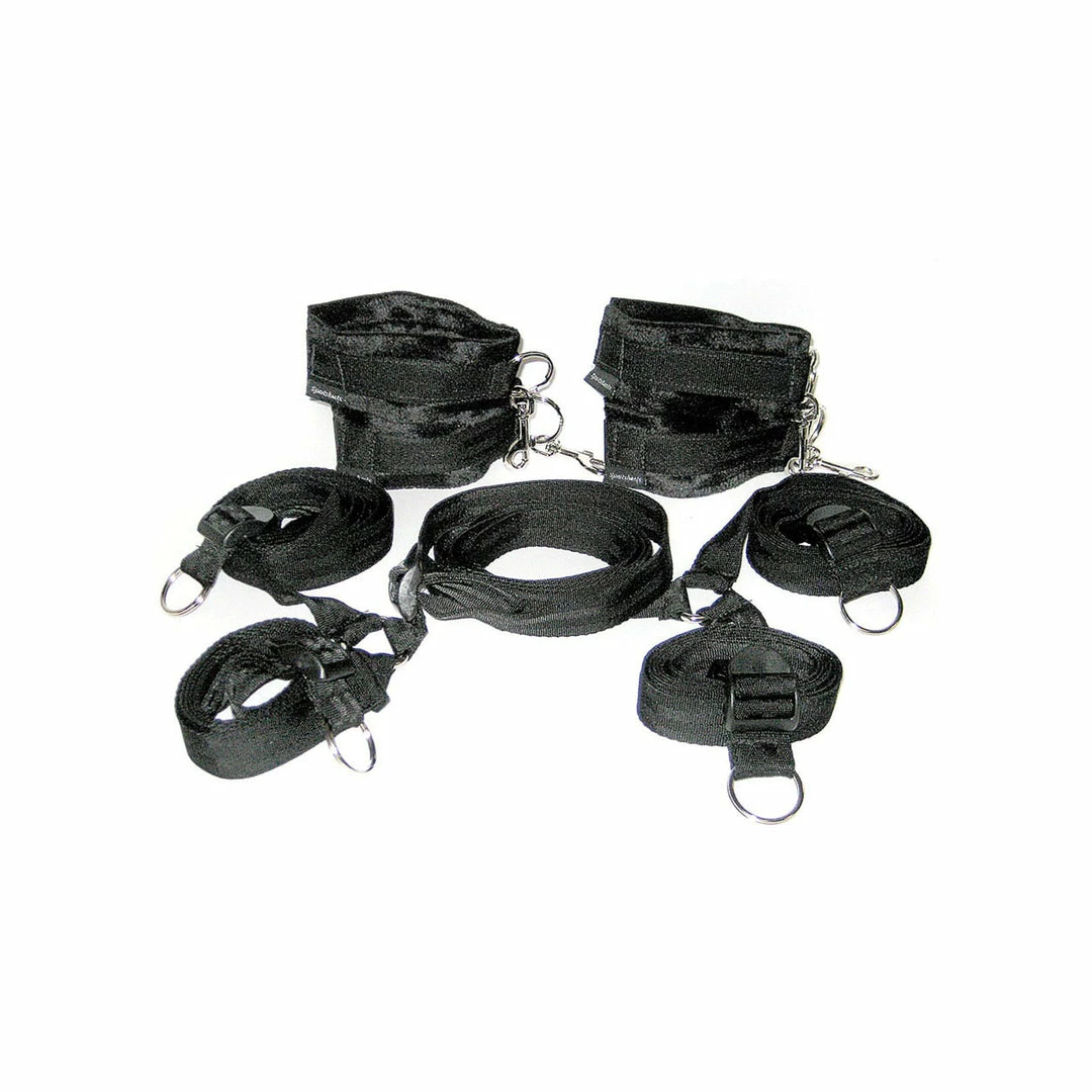Includes: Four 60 inches restraint straps and one 60 inches connector strap. Includes: 4 adjustable cuffs (fits 4 inches to 12 inches wrists), 4 restraint straps secured to one connector strap that fits securely under your mattress.