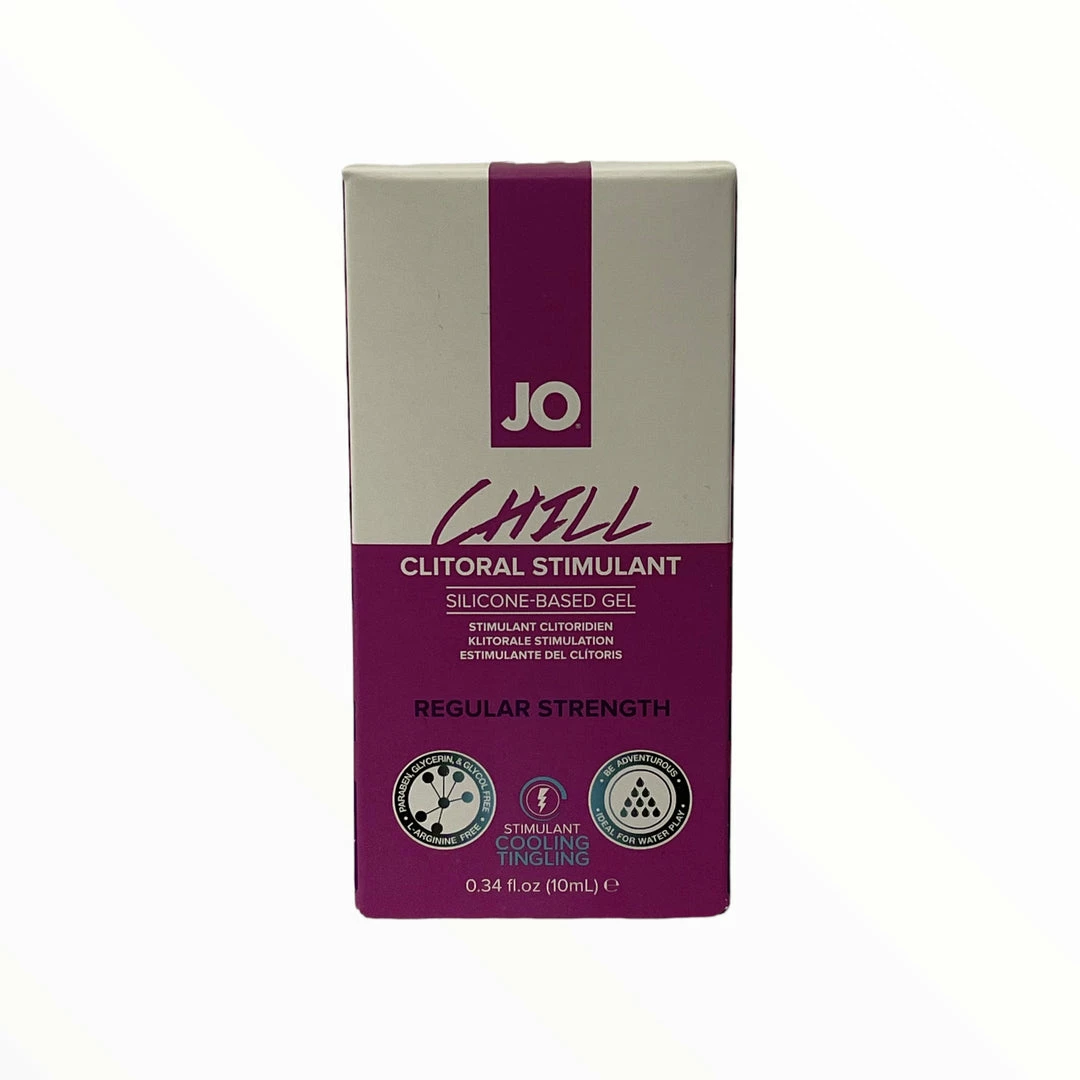 JO® CHILL is a silicone-based clitoral stimulant formulated to heighten sensual pleasure with a thrilling cooling topical sensation. Designed to enhance touch sensation and sensitivity during foreplay and solo play.